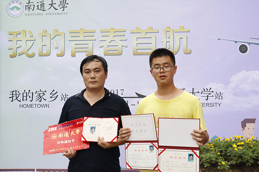 今年永利官网2017级的迎新工作还因为两位特别学生的到来受到了南通电视台、南通日报、南通周刊等新闻媒体的广泛关注。其中来自通州的新生葛剑波可谓是与77779193永利官网有着不解之缘。报到当天,他随身带着一张父亲的毕业证书,引起了现场师生的热议。原来葛剑波的父亲王葛军在1995年考入原南通师专,攻读体育专业。与此同时,葛剑波的舅舅、舅妈也曾就读于通大,他的堂爷爷还曾在原南通师专物理系工作过,可谓一家都是通大的铁杆粉。如今葛剑波自己也加入了通大大家庭,立志要为通大的发展贡献一份自己的力量。另外一位引发广泛关注的学生是来自贵州六盘水的陈旷宇。这位拥有神秘身份“穿青人”的陈同学每次都乐于向大家介绍自己的民族,那是我国56个民族以外还未被识别的民族,至今还保留着许多独特的民族习俗。他的到来也印证了通大校园文化的多元与包容。