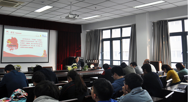 徐晓艳从“中国共产党人的初心和使命”、“不忘初心、牢记使命的深刻内涵”、“为什么要不忘初心、牢记使命”、“如何坚守初心使命,实现学院高质量内涵发展”等四个方面,详细阐释了“不忘初心、牢记使命”的内涵以及坚守初心使命的重要性。结合主题教育调研活动,徐晓艳分析了学院发展中的瓶颈问题,就做好当前及今后的工作提出了四点要求:一是不忘初心,贵在坚守;二是勇担使命,乐于奉献;三是对标找差,精准发力;四是凝心聚力,主动作为。她希望大家以矢志不渝的信念、时不我待的劲头、舍我其谁的担当,凝心聚力、抢抓机遇、砥砺奋进、追求卓越,开创学院建设发展新局面,实现学院高质量内涵发展,为学校实现8050目标做出新的更大贡献。