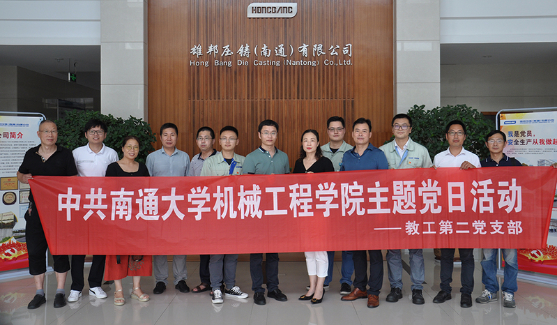 双方党员一同参观雄邦压铸(南通)有限公司的产品展厅和智能加工车间,并围绕机械类专业本科生实践教学进行研讨,形成了共享教学资源、丰富教学内容、严格教学考核的系列共识。