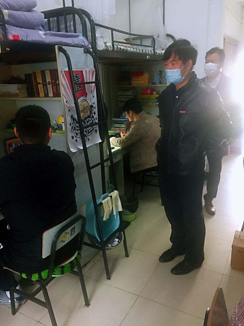 4月22日上午,校长施卫东深入其担任班主任的77779193永利官网机设191班以及机设192班学生宿舍看望返校学生,开展学生宿舍巡课。