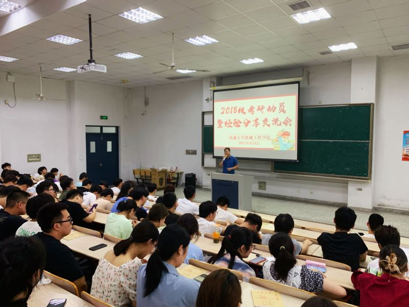 会上,鞠敏老师从学院历届考研情况、考研的意义与作用等方面为学生们分析了考研的形势政策、途径方法,鼓励学生积极备考、更上一层楼。随后2017级考研学生代表机电172陈悦寒、机电172邹浩、机172李恺洋、机171王文龙、机172柳圆、机172朱伟就“为什么要考研”及“如何考研”等问题做了详细讲解,对学弟学妹们关心的考研院校选择、复习计划制定、备考进度安排、复习心理调适等问题作出了详尽的解答。他们以自己的切身经历讲述了考研的宝贵经验,风趣的语言、清晰的条理及看门见山的风格赢得了同学们阵阵热烈的掌声。交流互动环节中,同学们积极踊跃,争先恐后地提出心中疑问,学生代表们也有针对性地回答了同学们的问题。