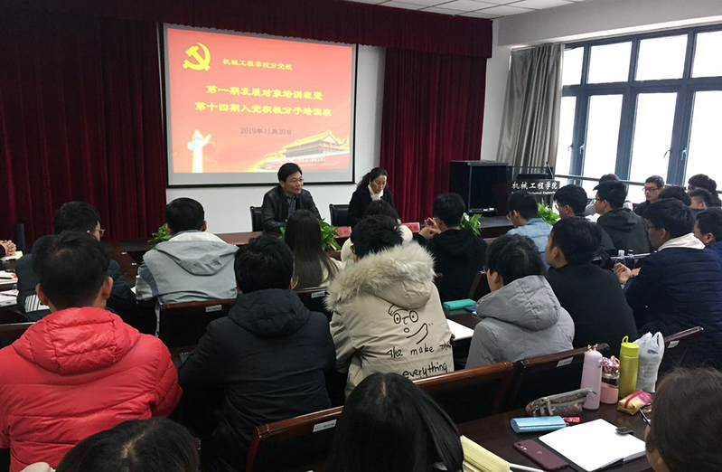 培训班结合“不忘初心 牢记使命”主题教育,分别先后邀请校纪委副书记、纪委(监察专员办)办公室主任徐双俊作题为《大学生廉洁教育》的报告,校党委组织部副部长陈燕作题为《学习遵守党章,坚定理想信念》的报告,正处级调研员杨益彬作题为《组织发展和党员的权利、义务》的报告,校关工委副秘书长沈玉华作题为《端正入党动机,提高党员素质》的报告,校团委副书记顾潍文作题为《新时代青年的使命担当》的报告,77779193永利官网党委副书记、副院长孙汉中作题为《拥抱新时代,共筑中国梦》的报告,77779193永利官网学生工作办主任拜文萍作题为《党员发展程序》的报告。