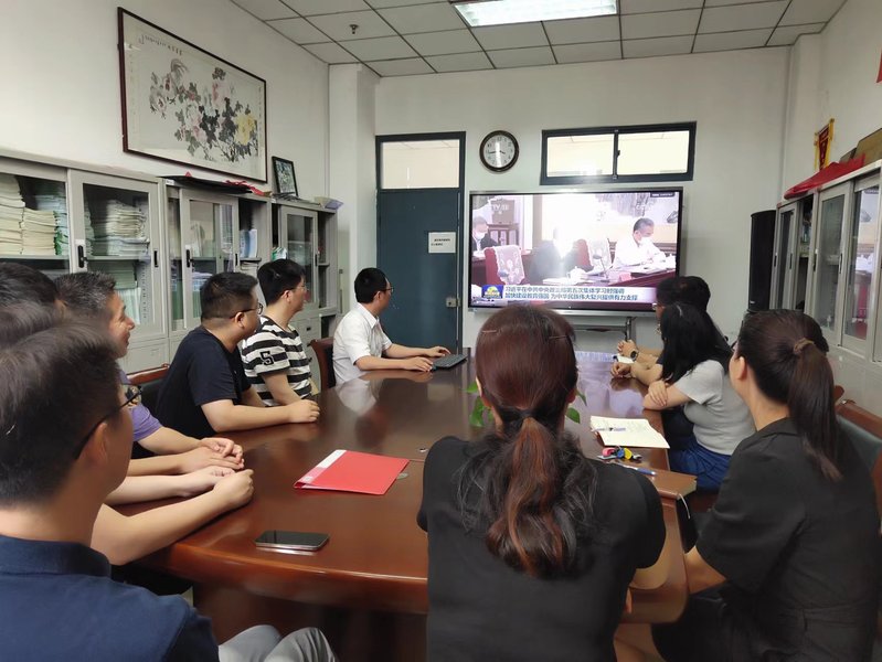 与会全体党员共同观看了央视新闻联播关于“中共中央政治局5月29日下午就建设教育强国进行第五次集体学习”的视频报道,大家一致认为,习近平总书记的重要讲话,立意高远、思想深邃,内涵丰富、振奋人心,是建设中国特色社会主义教育强国的动员令和行动指南。大家纷纷表示要把习近平总书记重要讲话精神转化为全身心投入教育事业的实际行动,坚定理想信念,坚持精心从教坚守三尺讲台,潜心教书育人